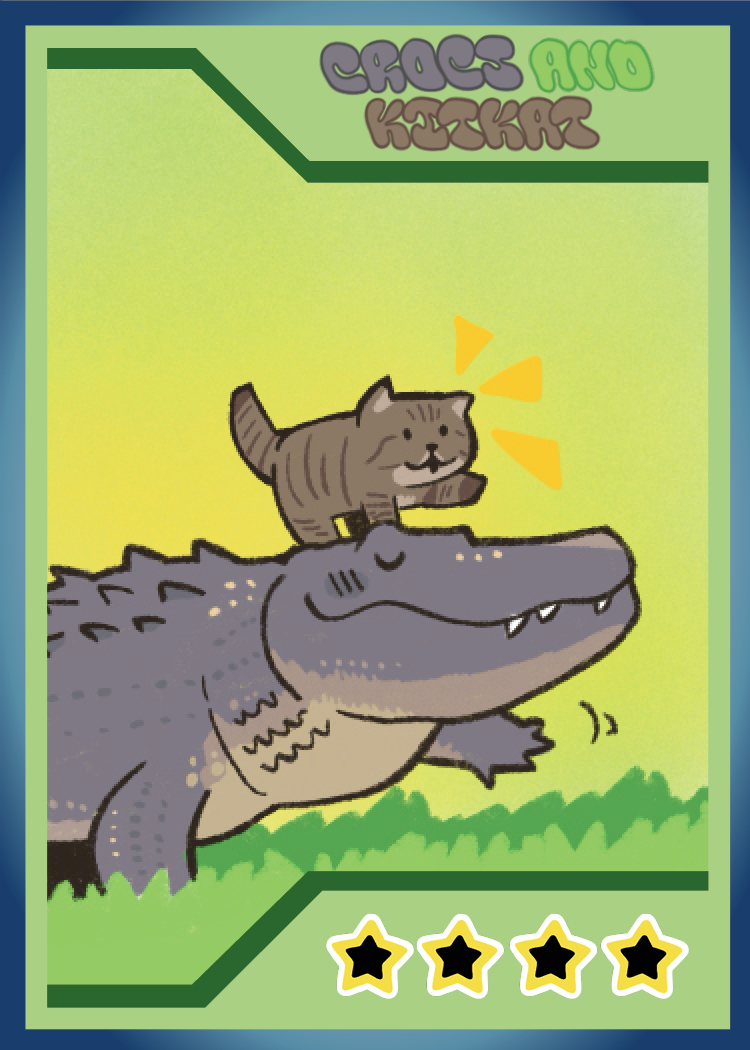 I want to improve this project because I used to draw with a mouse, and I can see the imperfections of the illustrations I made back in the first semester. The card designs need a complete overhaul because it's just the name of the character on the card and the drawing. I would also like to make the cards feel like they are part of the same set despite the concept being that they are nonsensical without any connection.
