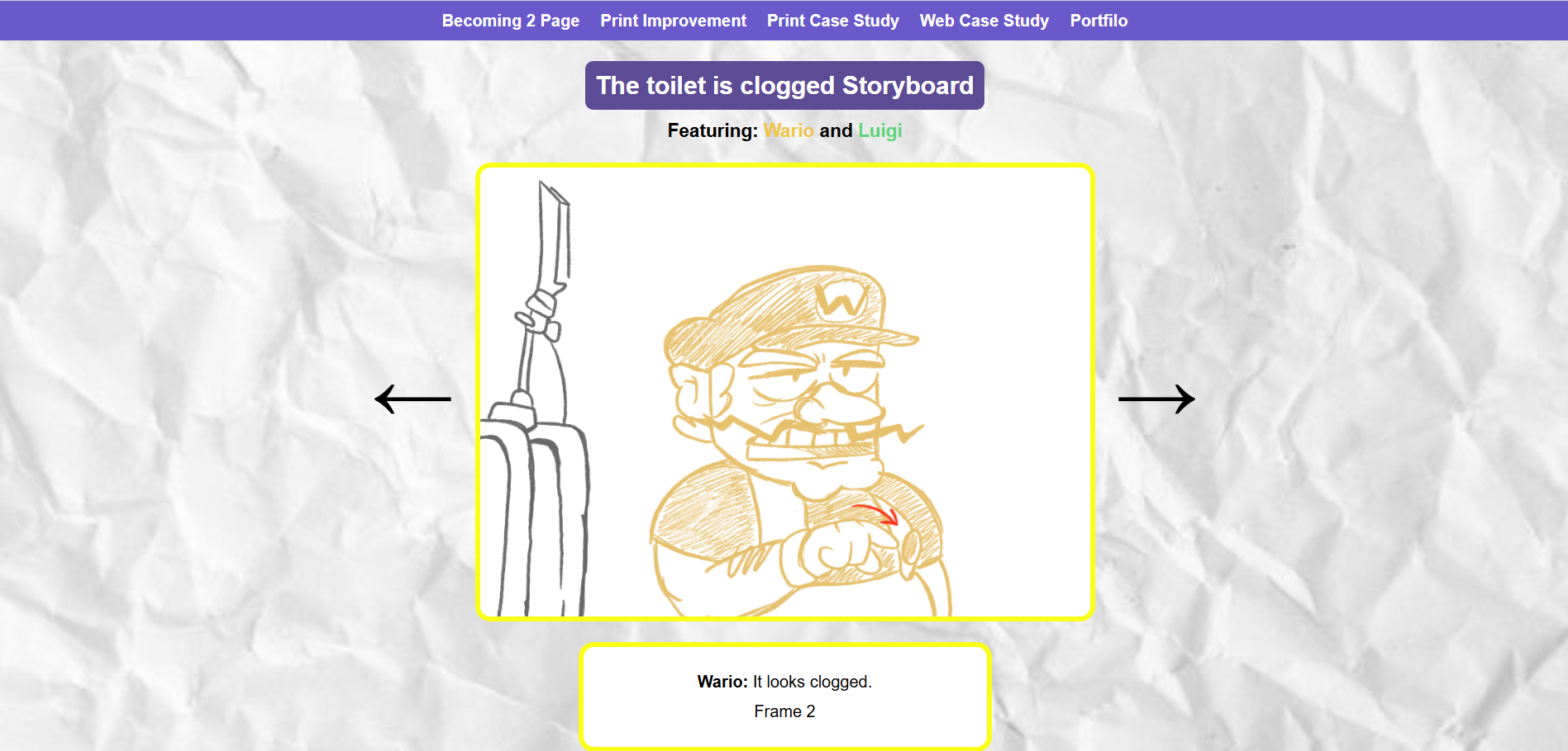 I want to improve this project because the website itself looks very rushed. The storyboard frames are off centre and I would like to make the storyboard frames easier to visualize and more interactive.
