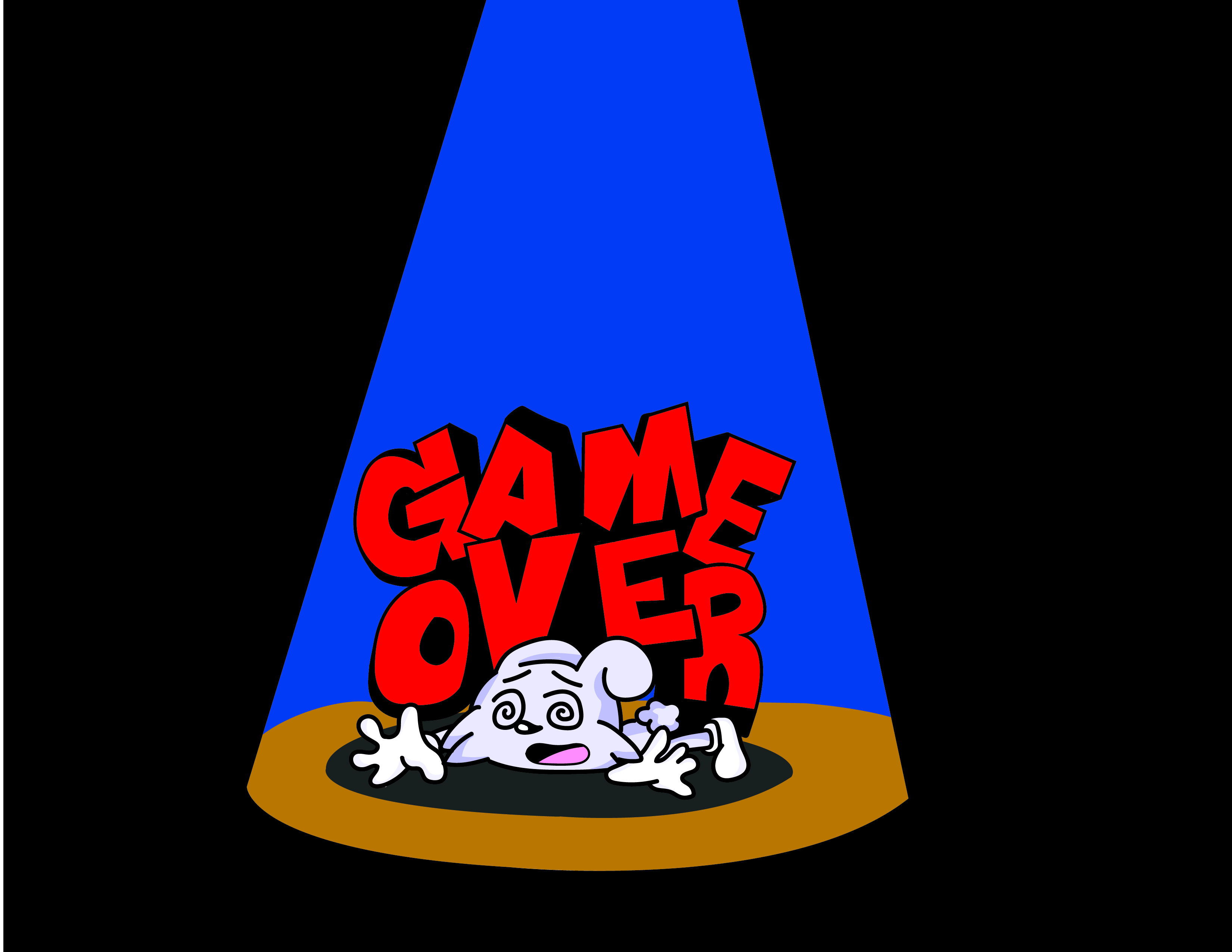 When you take more than 3 hits of damage, you get a game over. This is the game over screen I drew up. The big "GAME OVER" text crushing Lucky.