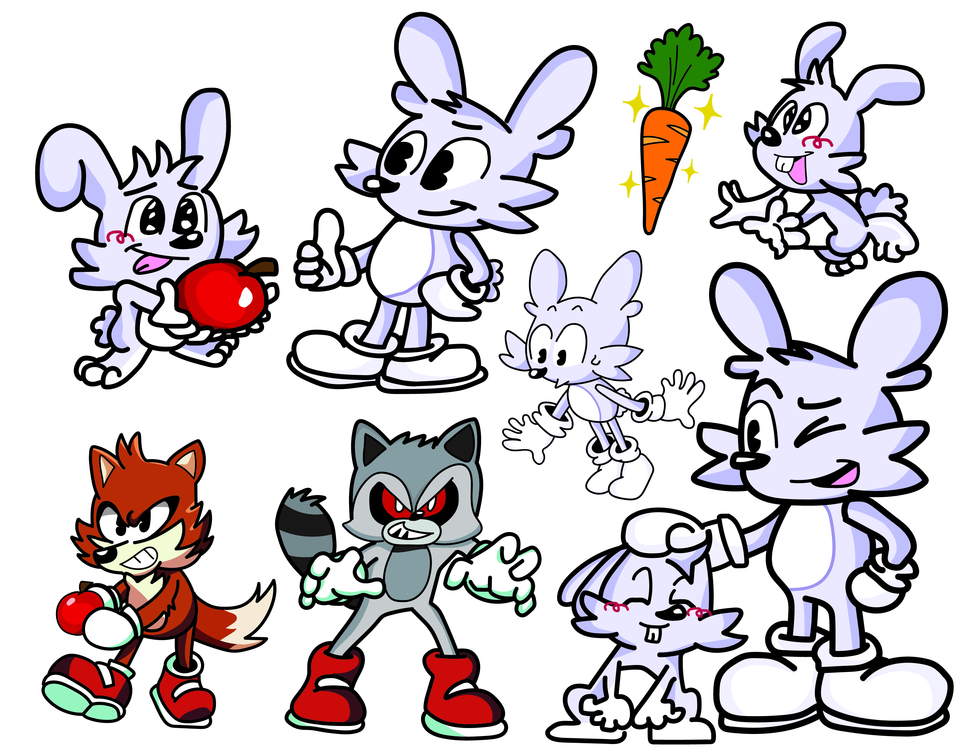 These are just some more character artwork I drew up. You might notice that there are 2 other characters. The fox is called Yoink and the Raccon is called Ragoon. These are scarpped enemies for the game due to time constraints. I did make some spritesheets for them but we didn't have time to implement them sadly. Maybe in a future update.