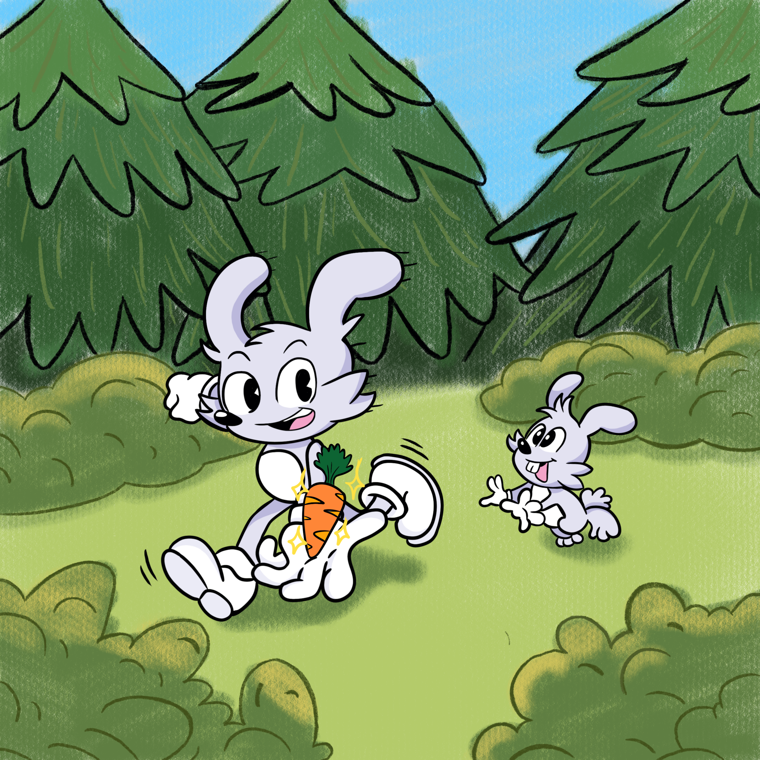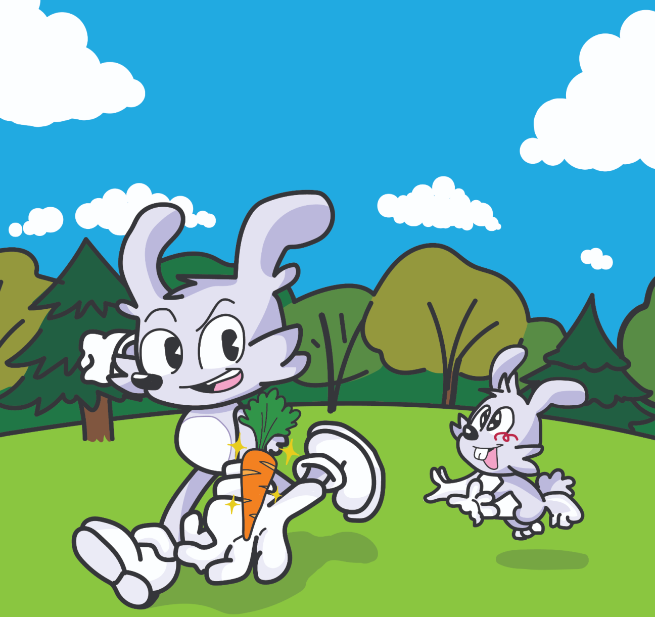 The idea of the game started off by me sketching out a little bunny character in my notebook. I then tried expanding the idea and making character game assets and showing them to my teammates. I was in charge of making the game assets.